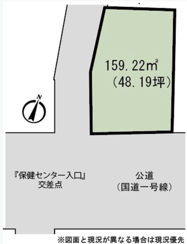 接道/公道(幅員約4m)西側・国道1号線(幅員約12m)南側